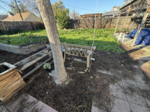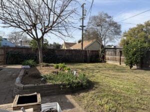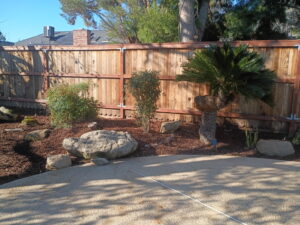 Beautified the back yard by removing some dirt and cutting in on the perimeter to install a bark base for aesthetics and overall curb appeal.