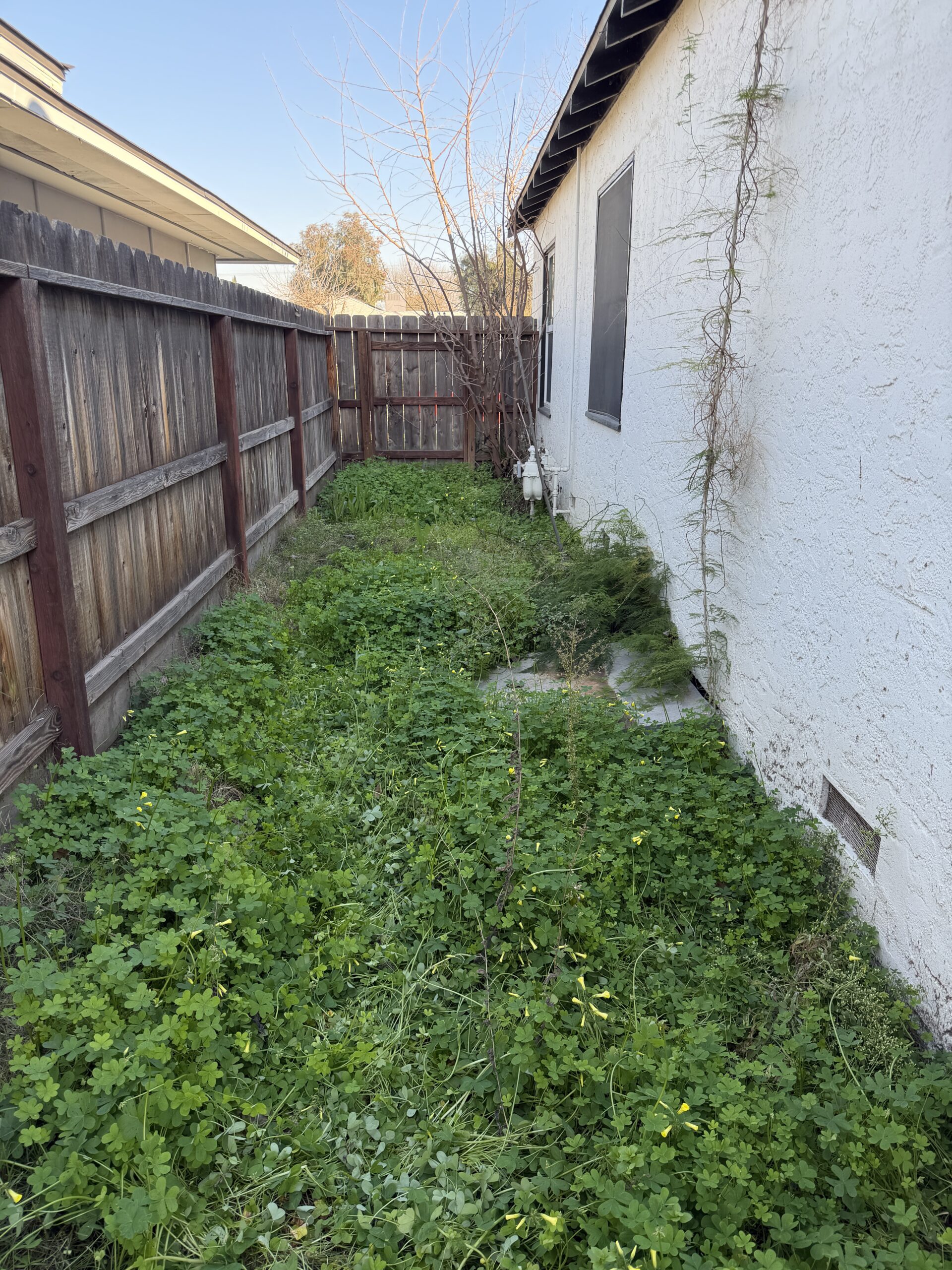 Had months and months of overgrowth and weeds to tend to, so we trimmed it up nicely where you can see the house and removed all the weeds.
